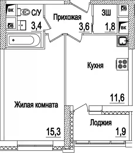 1-к.квартира, 35.7 м², 14 эт. в ЖК Рассказово Корпус 15.2