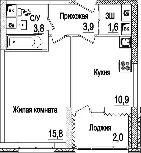 13 222 668 ₽2-к.квартира, 39.6 м², 20 эт.