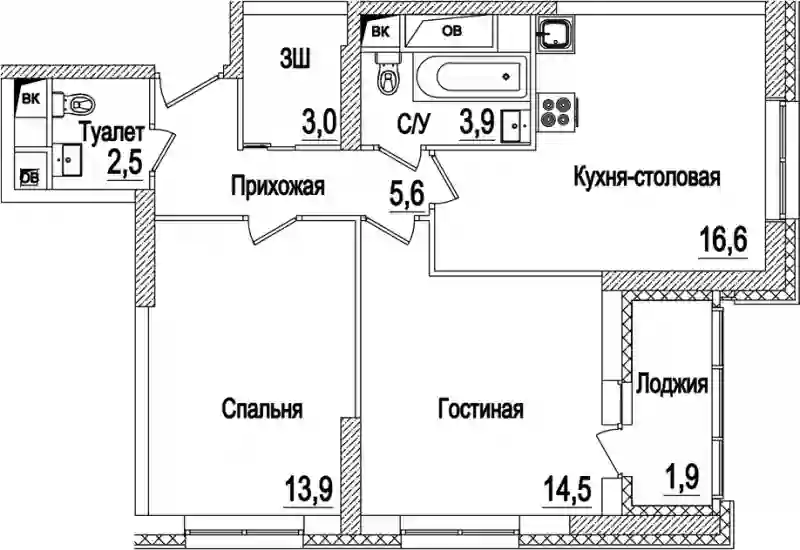 16 956 000 ₽3-к.квартира, 58.5 м², 14 эт.