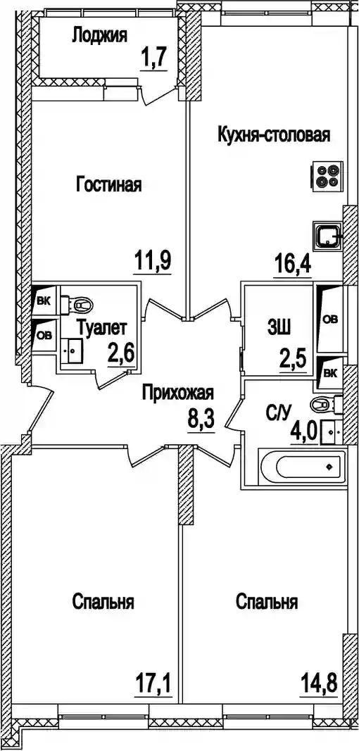 26 572 700 ₽3-к.квартира, 80.7 м², 17 эт.