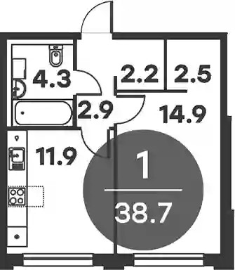 8 675 631 ₽1-к.квартира, 38.7 м², 1 эт.