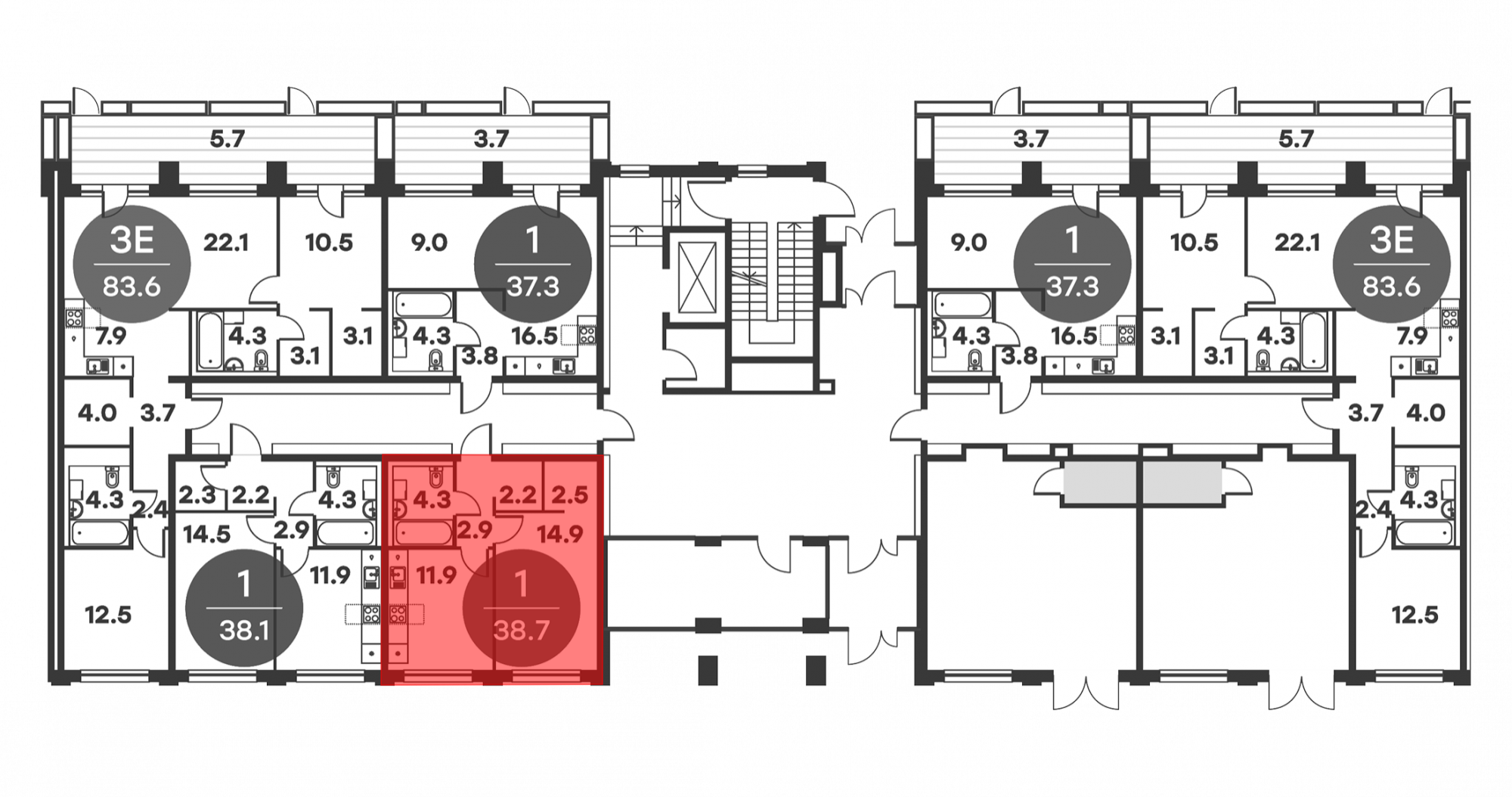 9 173 358 ₽1-к.квартира, 38.1 м², 1 эт.