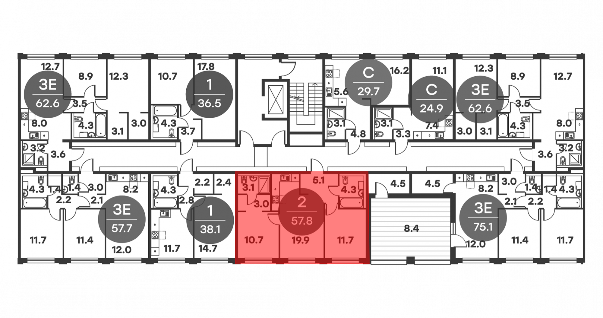 2-к.квартира, 57.8 м², 6 эт. в ЖК Равновесие Корпус 1.1