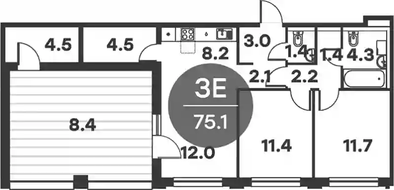 3-к.квартира, 75.1 м², 6 эт. в ЖК Равновесие Корпус 1.1