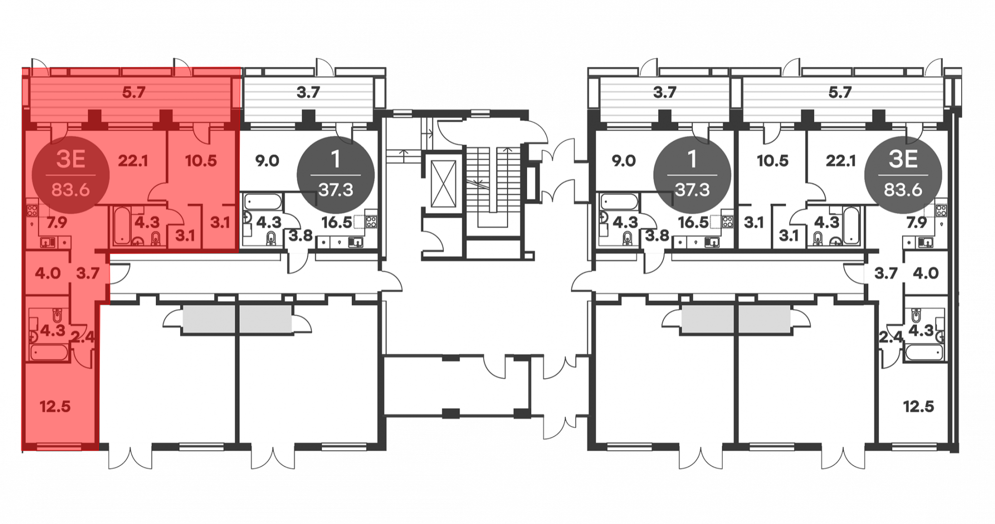 3-к.квартира, 83.6 м², 1 эт. в ЖК Равновесие Корпус 1.1
