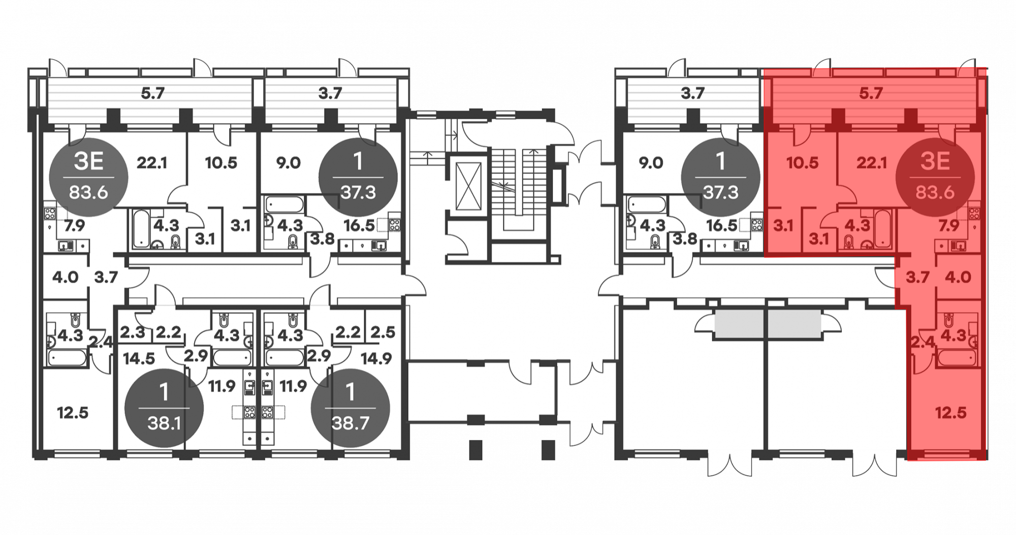 3-к.квартира, 83.6 м², 1 эт. в ЖК Равновесие Корпус 1.1