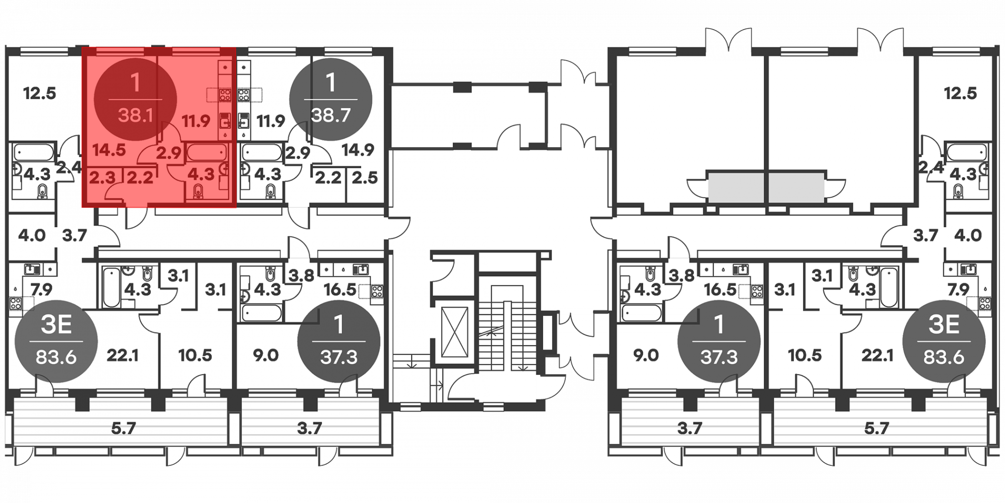 1-к.квартира, 38.1 м², 1 эт. в ЖК Равновесие Корпус 1