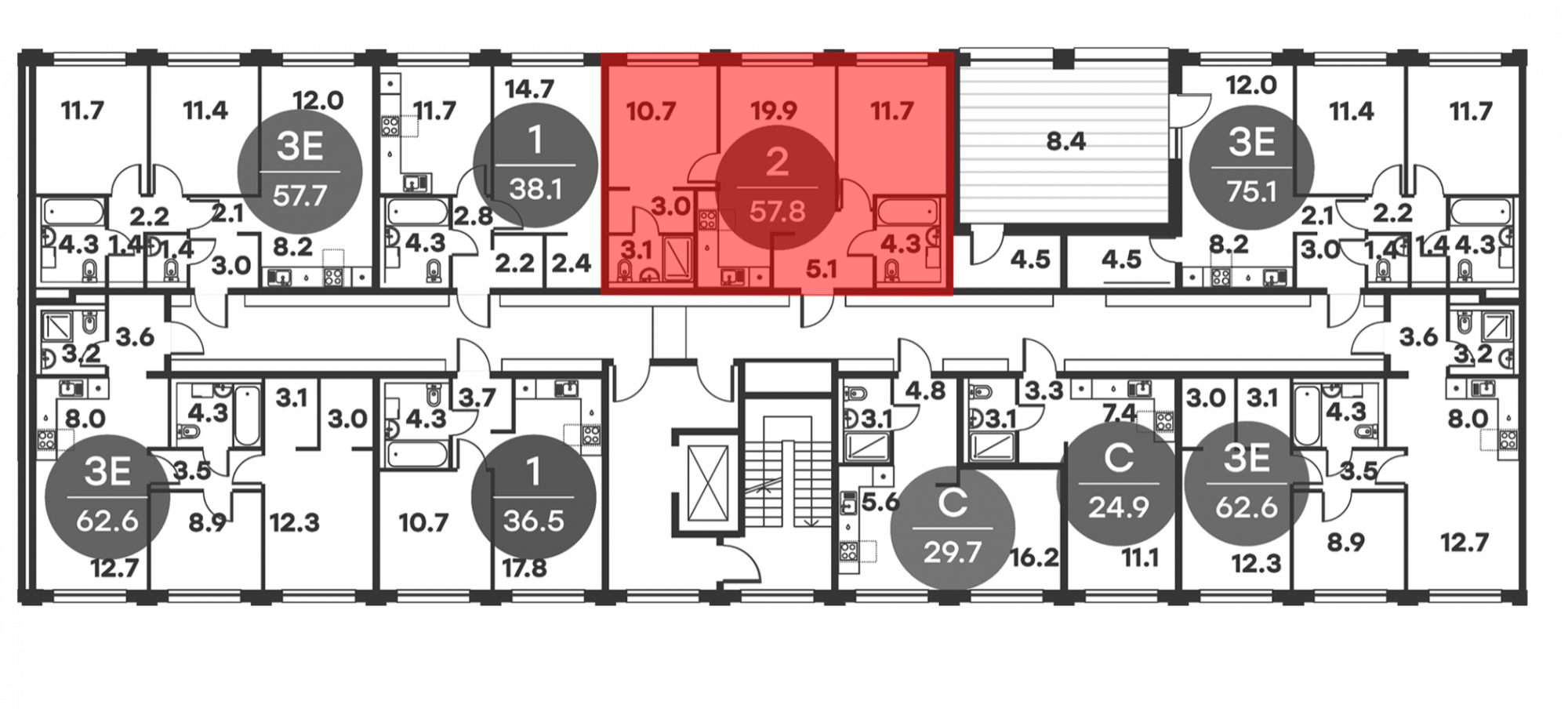 2-к.квартира, 57.8 м², 6 эт. в ЖК Равновесие Корпус 1