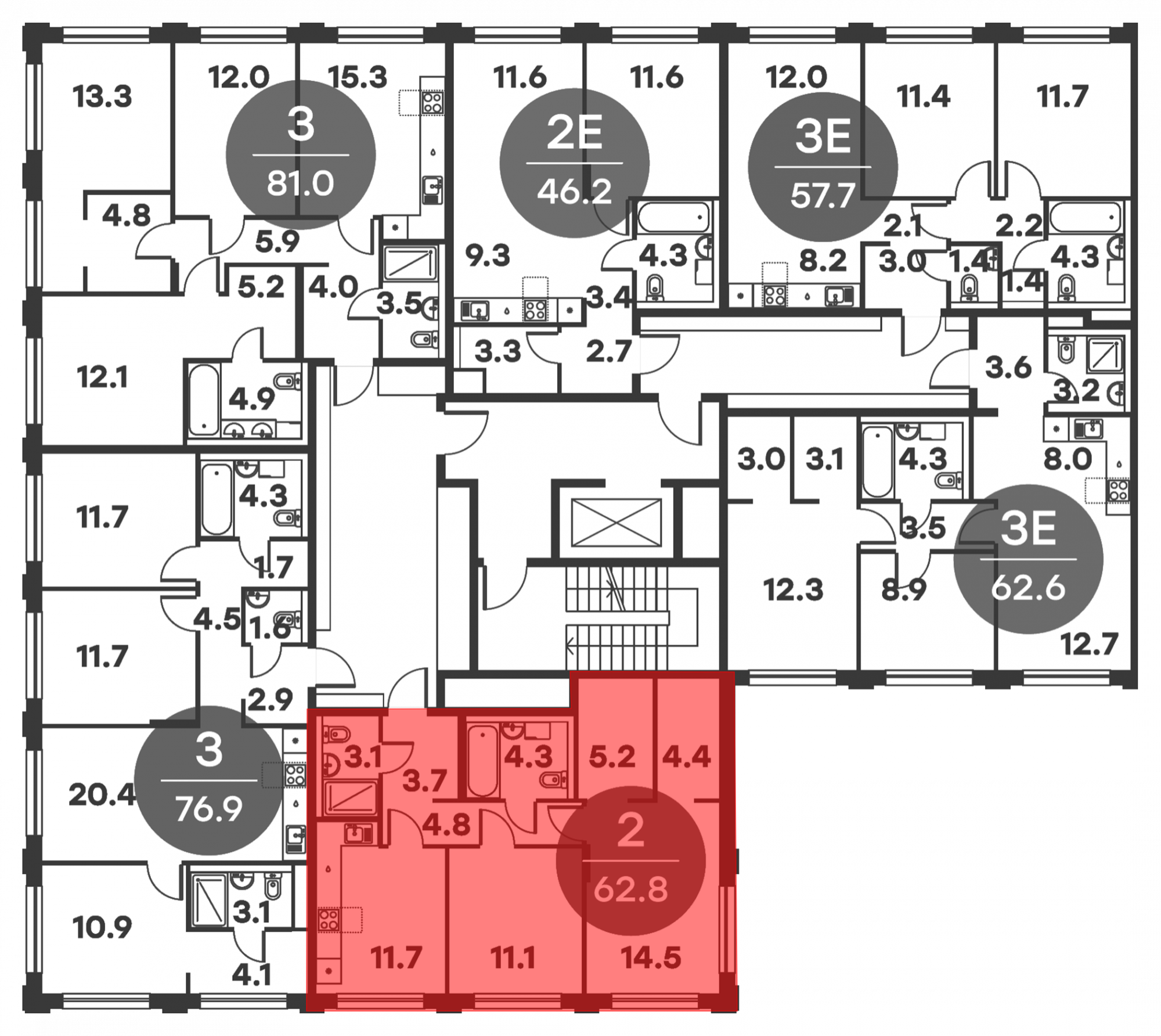 12 787 396 ₽3-к.квартира, 62.6 м², 2 эт.