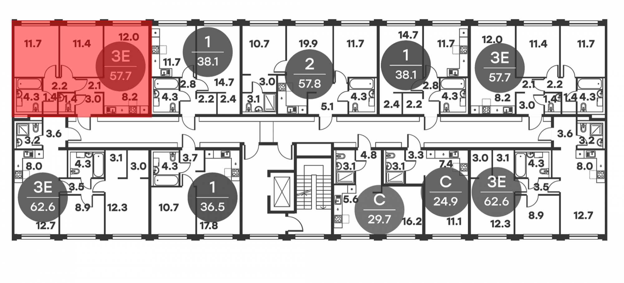 3-к.квартира, 57.7 м², 2 эт. в ЖК Равновесие Корпус 1
