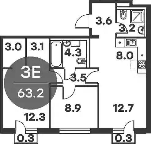 13 588 316 ₽3-к.квартира, 62.6 м², 2 эт.