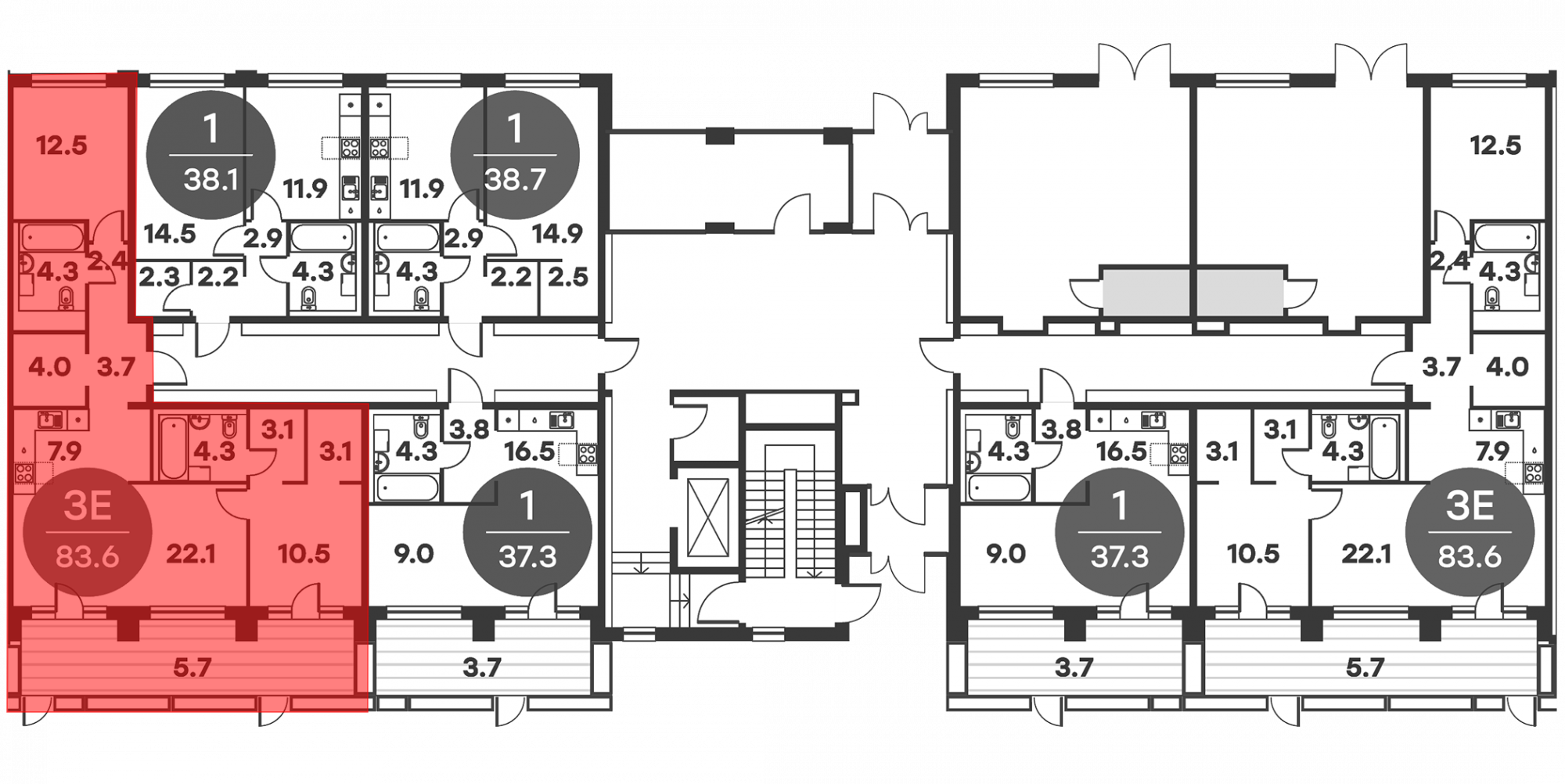 3-к.квартира, 83.6 м², 1 эт. в ЖК Равновесие Корпус 1
