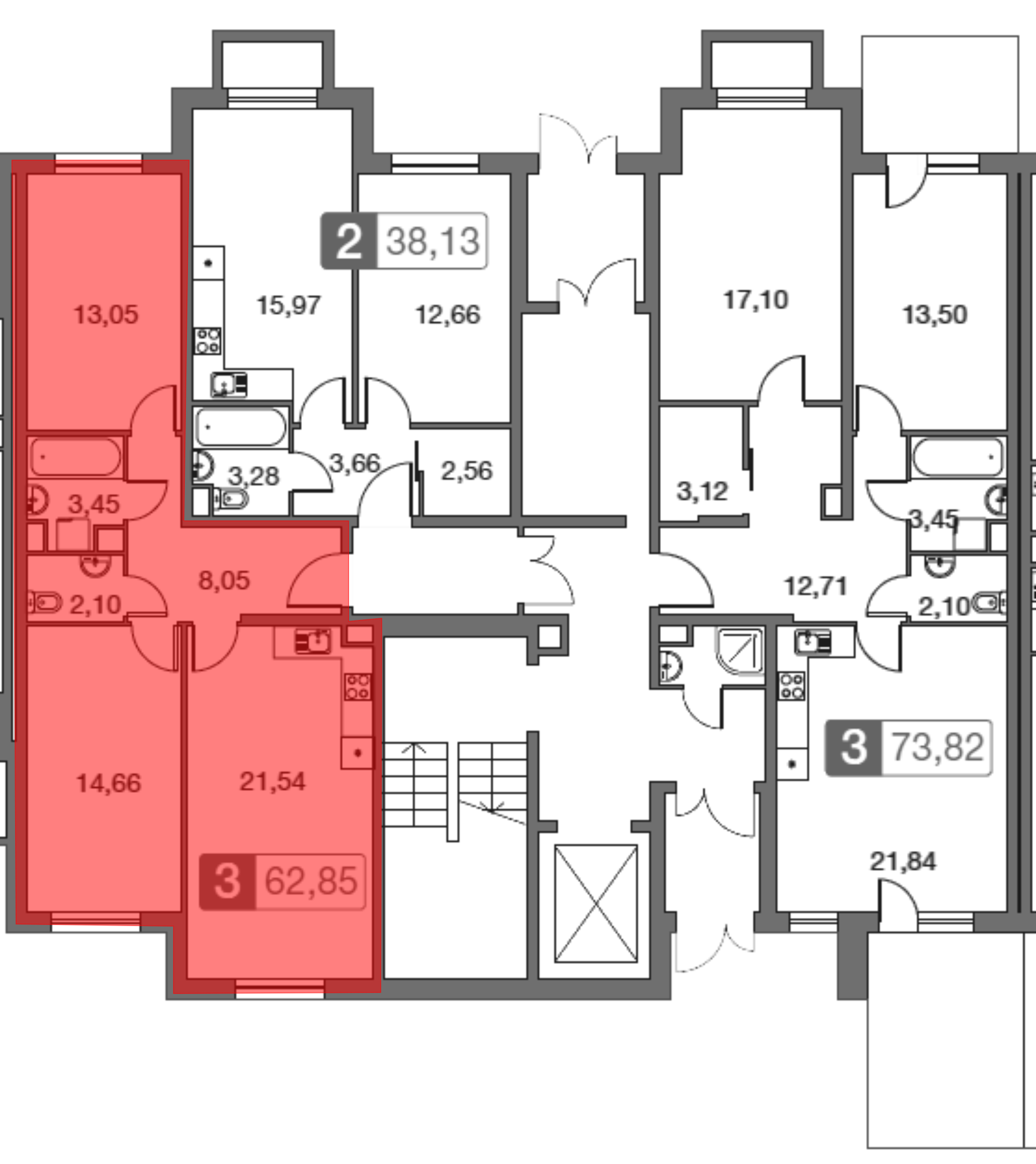 10 724 719 ₽3-к.квартира, 63.8 м², 3 эт.