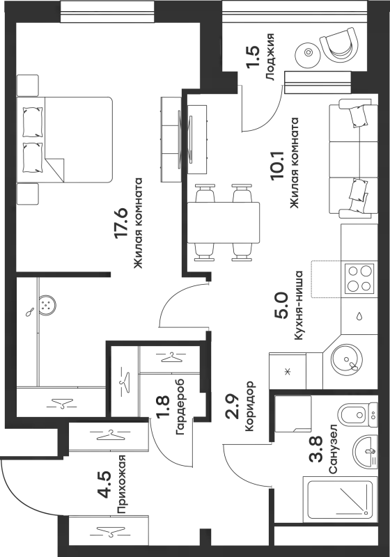 9 153 135 ₽2-к.квартира, 42.8 м², 3 эт.
