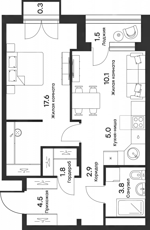 2-к.квартира, 45.9 м², 4 эт. в ЖК Равновесие Корпус 11А
