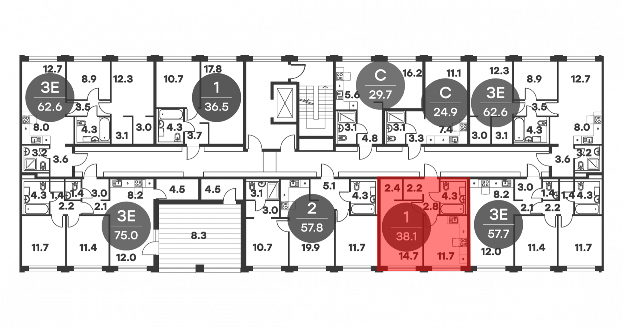 1-к.квартира, 38.1 м², 4 эт. в ЖК Равновесие Корпус 2.1