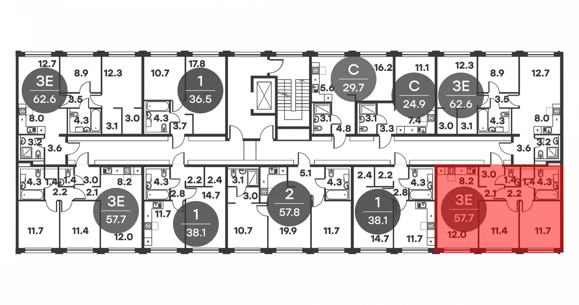 3-к.квартира, 57.7 м², 2 эт. в ЖК Равновесие Корпус 2.1