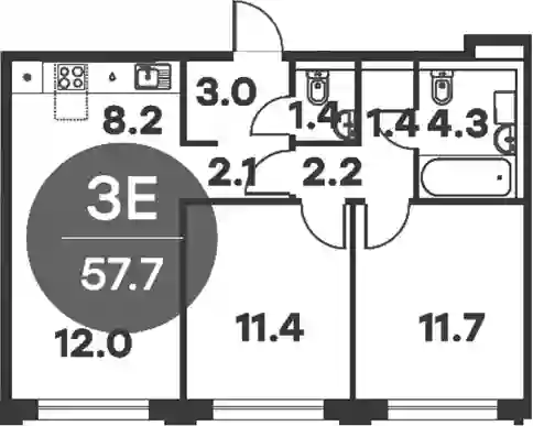 11 261 088 ₽3-к.квартира, 57.7 м², 4 эт.