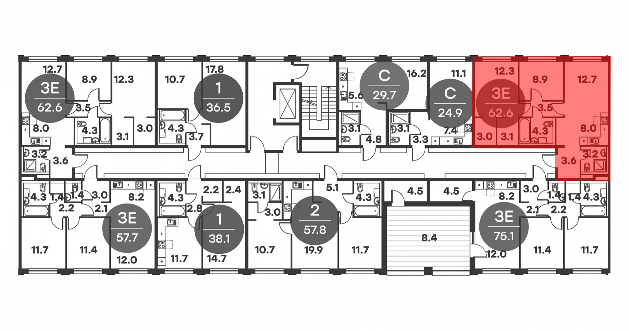 3-к.квартира, 62.6 м², 6 эт. в ЖК Равновесие Корпус 2.1