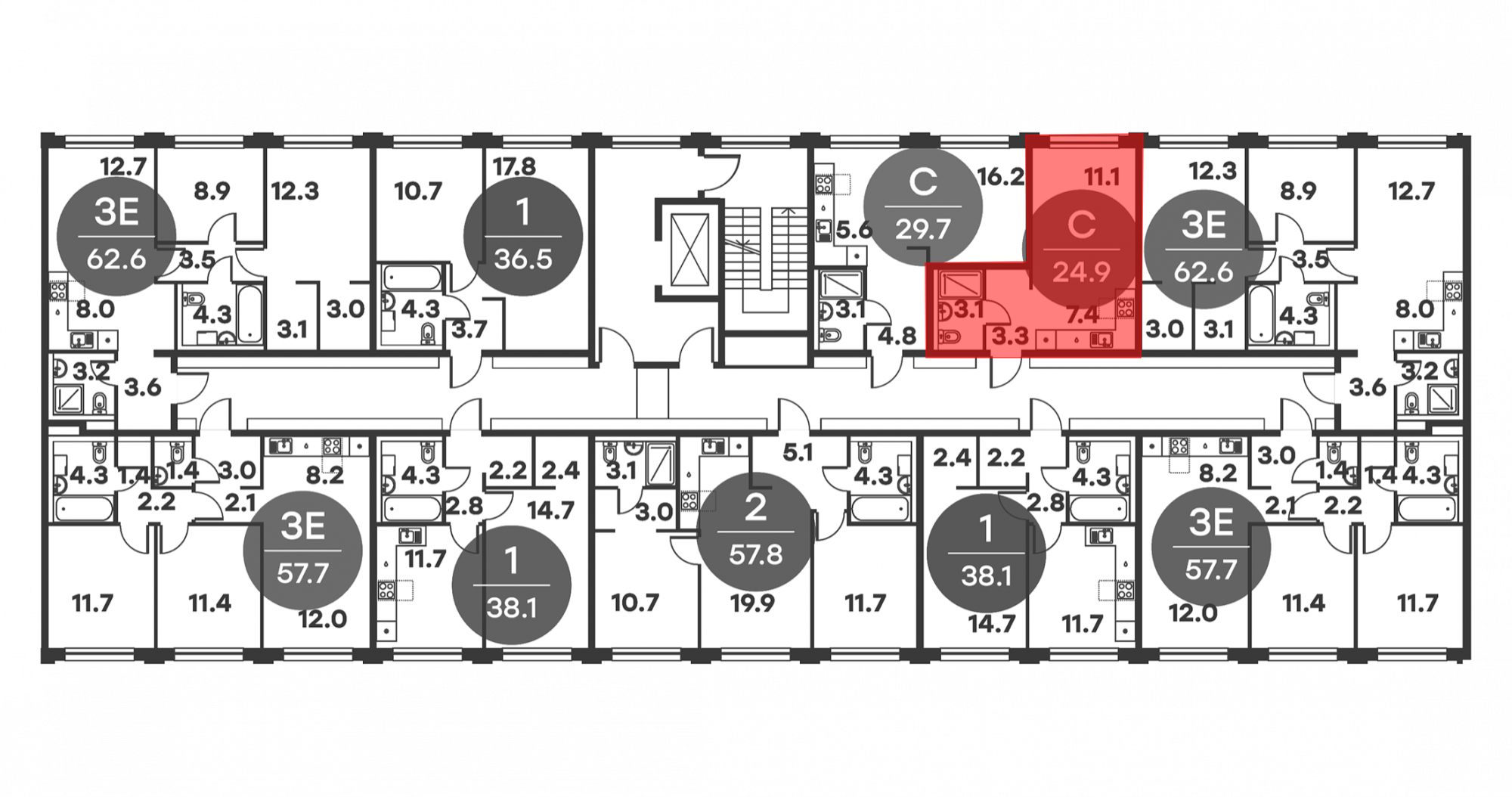 24.9 м2