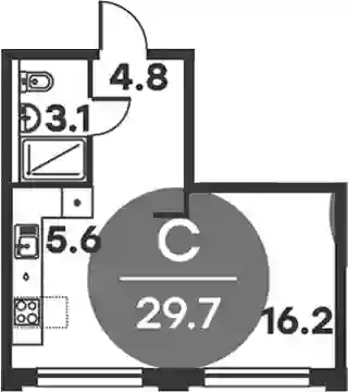 Студия, 29.7 м², 6 эт. в ЖК Равновесие Корпус 2