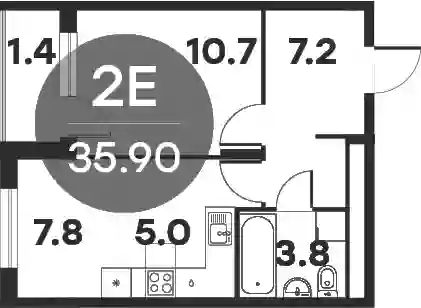 2-к.квартира, 34.5 м², 4 эт. в ЖК Равновесие Корпус 4