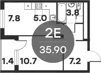 2-к.квартира, 34.5 м², 4 эт. в ЖК Равновесие Корпус 5