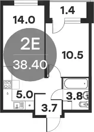 7 114 608 ₽1-к.квартира, 38.29 м², 1 эт.