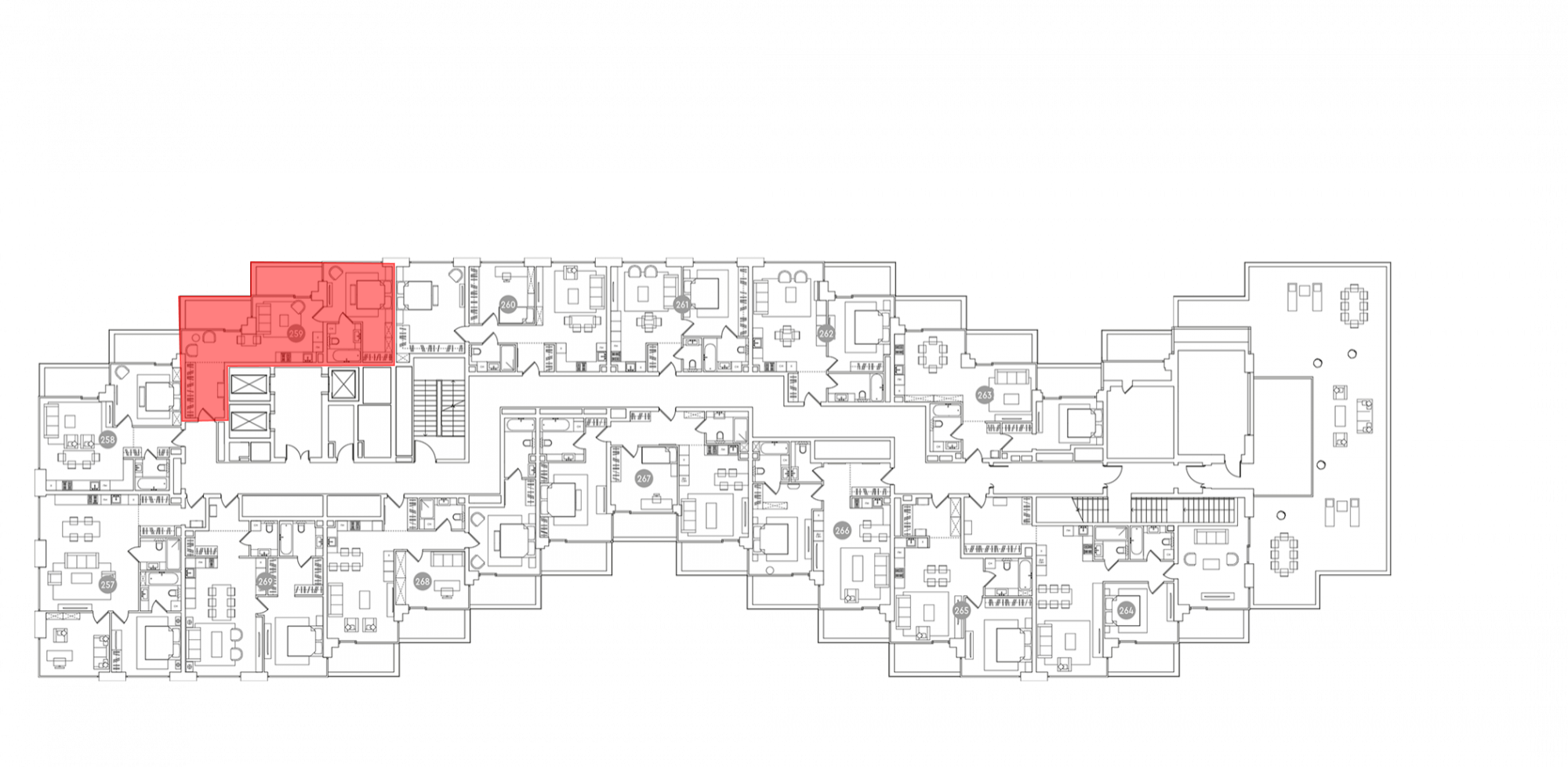В комплексе спроектировано 289 апартаментов, в числе которых есть как компактные студии, так и просторные двухуровневые лоты с уникальными видовыми характеристиками. Дизайн апартаментов выполнен в современном и неоклассическом стилях, каждый из которых реализован в двух цветовых гаммах.