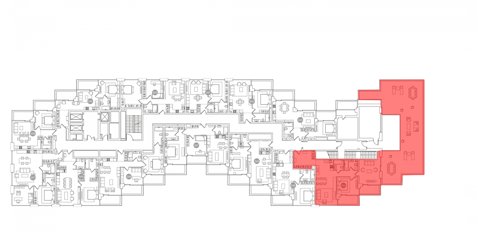 В комплексе спроектировано 289 апартаментов, в числе которых есть как компактные студии, так и просторные двухуровневые лоты с уникальными видовыми характеристиками. Дизайн апартаментов выполнен в современном и неоклассическом стилях, каждый из которых реализован в двух цветовых гаммах.