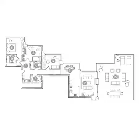 ЖК расположен в центре Москвы, на первой линии Садового кольца. Нежилая часть комплекса разделена на клубные зоны и места общественного пользования. В вестибюлях обеих секций круглосуточно дежурят портье, готовые в любую минуту помочь постояльцам. Доступ в жилую часть апартаментов доступен только по индивидуальным смарт-картам. Новостройка оснащена скоростными бесшумными лифтами с интеллектуальным управлением и возможностью спуска в паркинг, автоматической системой пожаротушения и централизованными системами кондиционирования воздуха и фильтрации воды. На высоте 15 метров над уровнем земли расположена «Небесная гостиная», которая представляет собой клубное пространство для резидентов комплекса. Здесь разместятся коворкинг, кинотеатр, детская комната, бильярдная, тренажерный зал и другие объекты.