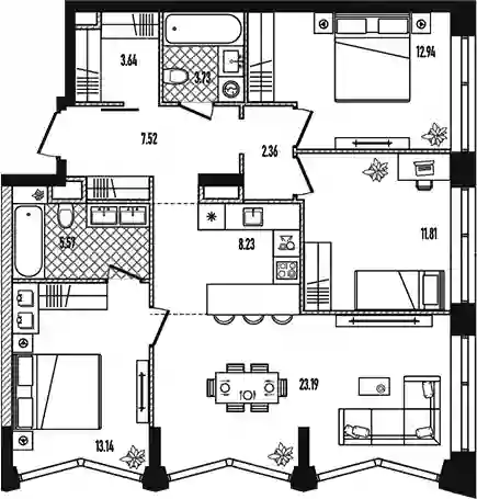 4-к.квартира, 92.13 м², 24 эт. в ЖК Republic Корпус GOLD