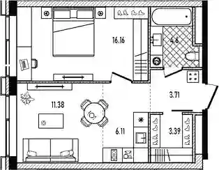 2-к.квартира, 45.35 м², 25 эт. в ЖК Republic Корпус GREEN