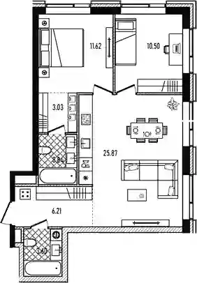 В комплексе предложен широкий выбор планировочных решений от компактных студий площадью 28 кв. метров до просторных пентхаусов с каминами площадью до 156 кв. метров. Также представлены редкие форматы квартир: с террасой, мастер-спальней и окном в ванной комнате. Уникальность проекта заключается в разнообразии типов остекления: в наличии 48 вариантов, включая джабо-окна, французские балконы и эркеры. Высота потолков составляет 3,1 метра, а в пентхаусах достигает 3,6 метра.