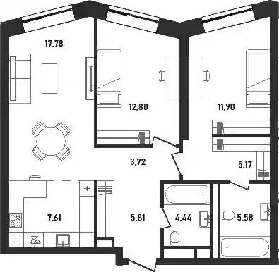 3-к.квартира, 74.81 м², 9 эт. в ЖК Republic Корпус Platinum