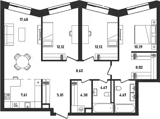 3-к.квартира, 95.81 м², 12 эт. в ЖК Republic Корпус Platinum