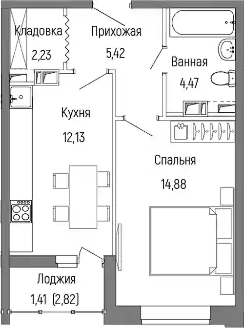 10 602 769 ₽1-к.квартира, 41.3 м², 1 эт.