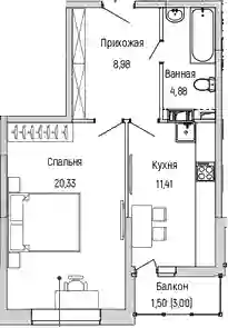 11 877 120 ₽1-к.квартира, 44.88 м², 3 эт.