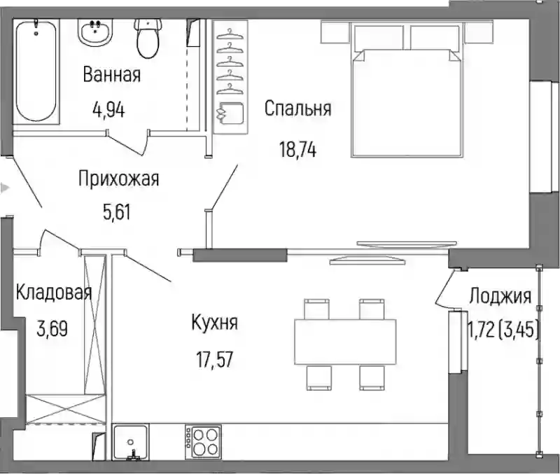 9 691 826 ₽1-к.квартира, 39.74 м², 2 эт.