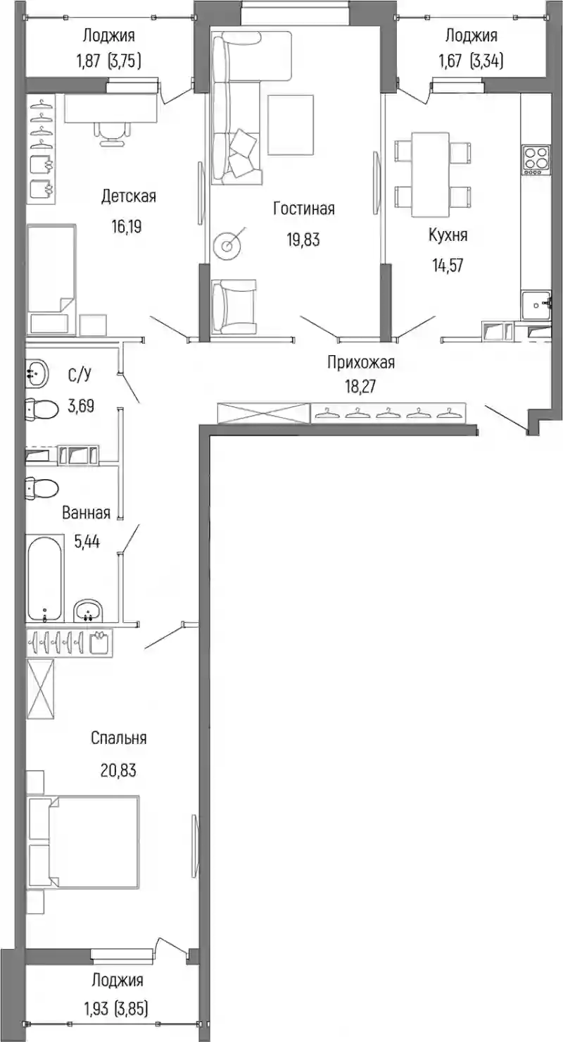 20 566 748 ₽3-к.квартира, 99.08 м², 5 эт.