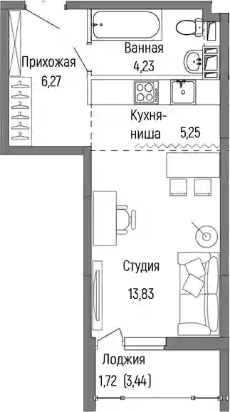 6 689 724 ₽Студия, 29.62 м², 4 эт.