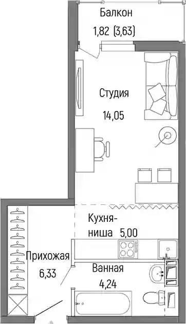 7 311 284 ₽Студия, 32.64 м², 3 эт.