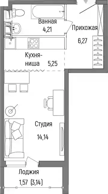 7 880 200 ₽Студия, 34.71 м², 3 эт.