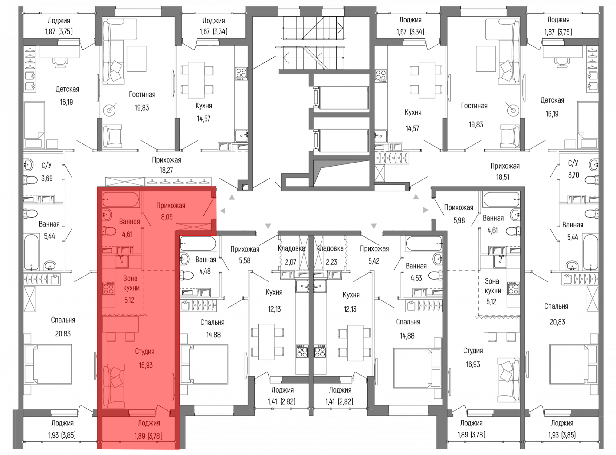 9 614 582 ₽1-к.квартира, 42.91 м², 5 эт.