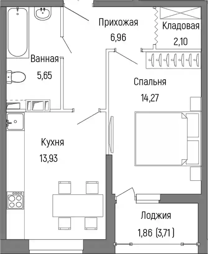 13 799 862 ₽1-к.квартира, 42.83 м², 6 эт.