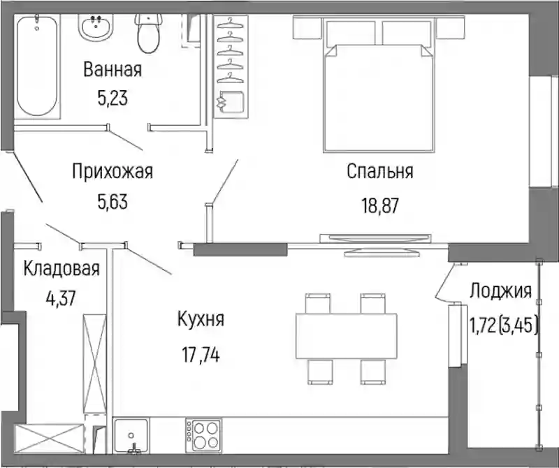 15 249 847 ₽1-к.квартира, 42.91 м², 7 эт.