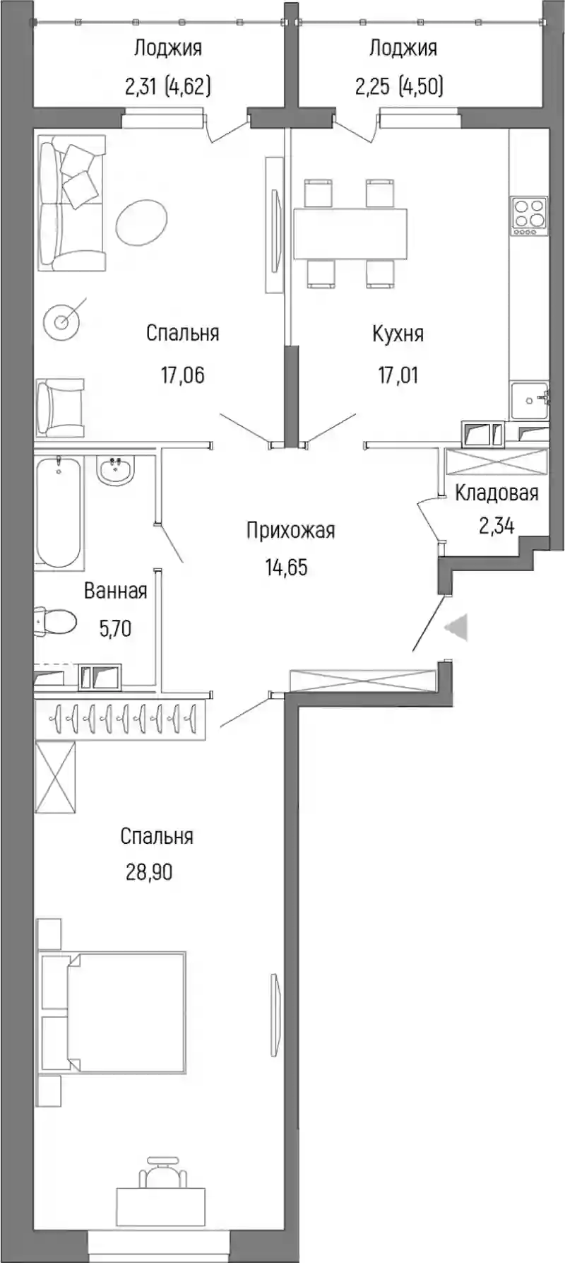 15 718 560 ₽2-к.квартира, 86.85 м², 4 эт.
