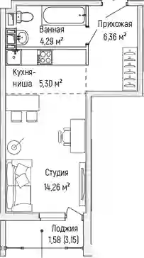 11 063 812 ₽Студия, 29.56 м², 6 эт.