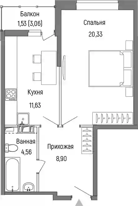 11 003 334 ₽1-к.квартира, 45.91 м², 9 эт.