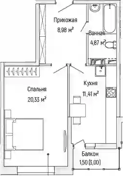 12 684 344 ₽1-к.квартира, 42.91 м², 7 эт.